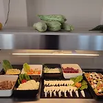 A Tigaki városi Ilios K Village Resort 07:30 és 09:45 között órakor büfé reggeli elérhető. A helyszíni bár frissítő koktélokat kínál minden ízlésnek. Itt előételeket és pizzát kínálnak minden ízlésnek. A vendégek görög ételeket fogyaszthatnak a Rodini kínálatából, amely rövid sétára található a Tigaki városi hoteltől.